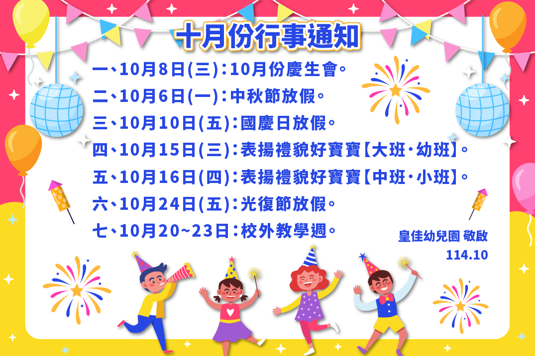 114年10月份行事通知